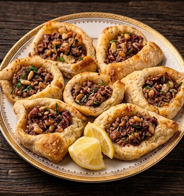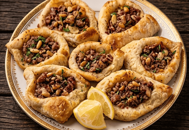 Pequeñas masas abiertas con carne especiada, tomate y un toque cítrico. Cada bocado libera aromas que recuerdan a los mercados del Medio Oriente.